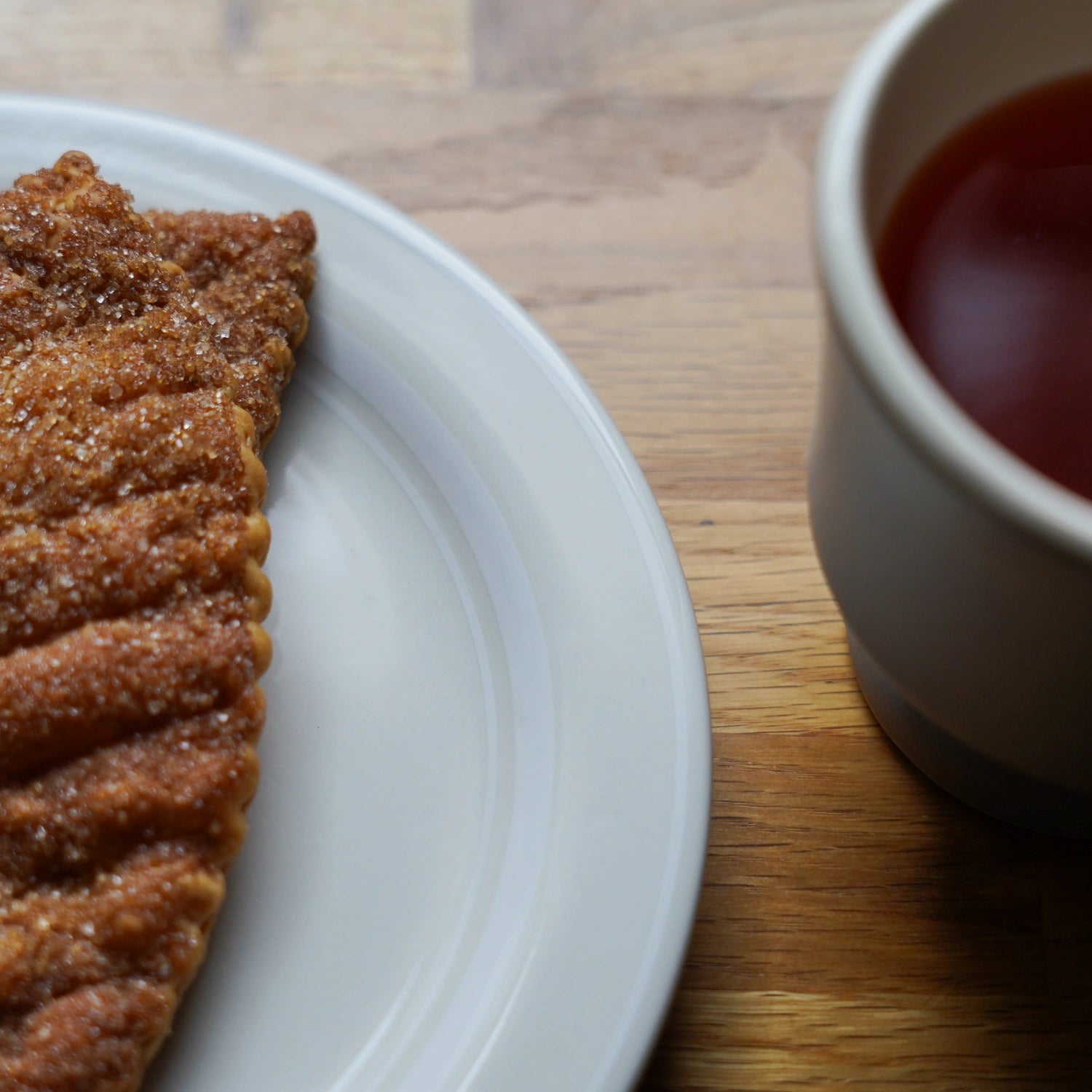 こういうお皿は、傷がついてこそより良い表情を見せてくれるものです。ティータイムのお供に、そっと置かれるナチュルテイストは、使う人の落ち着いたセンスを感じさせます。