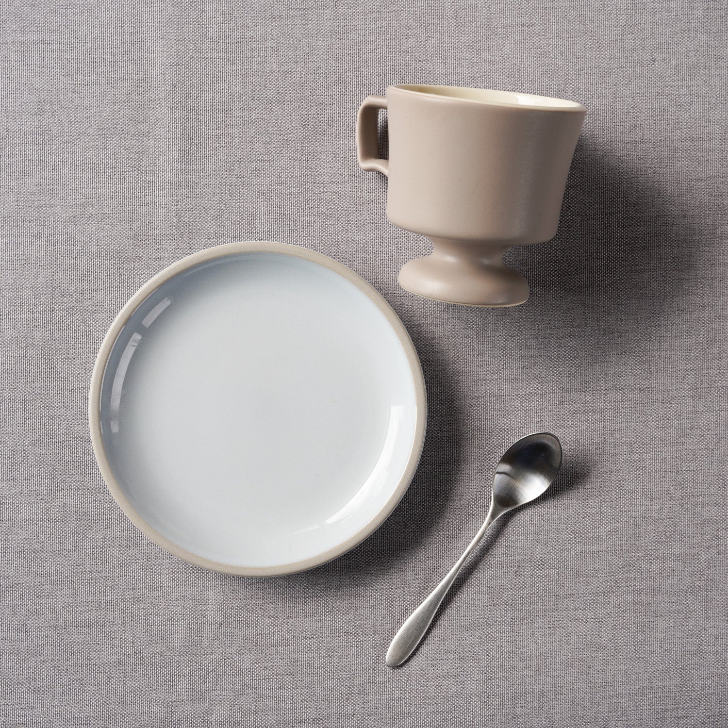 Enjoy the visuals as well with the cute shape of the goblet cup, the beautiful pale blue of the bisque edge plate, and the simple yet somehow striking Tsubame cutlery bolero.